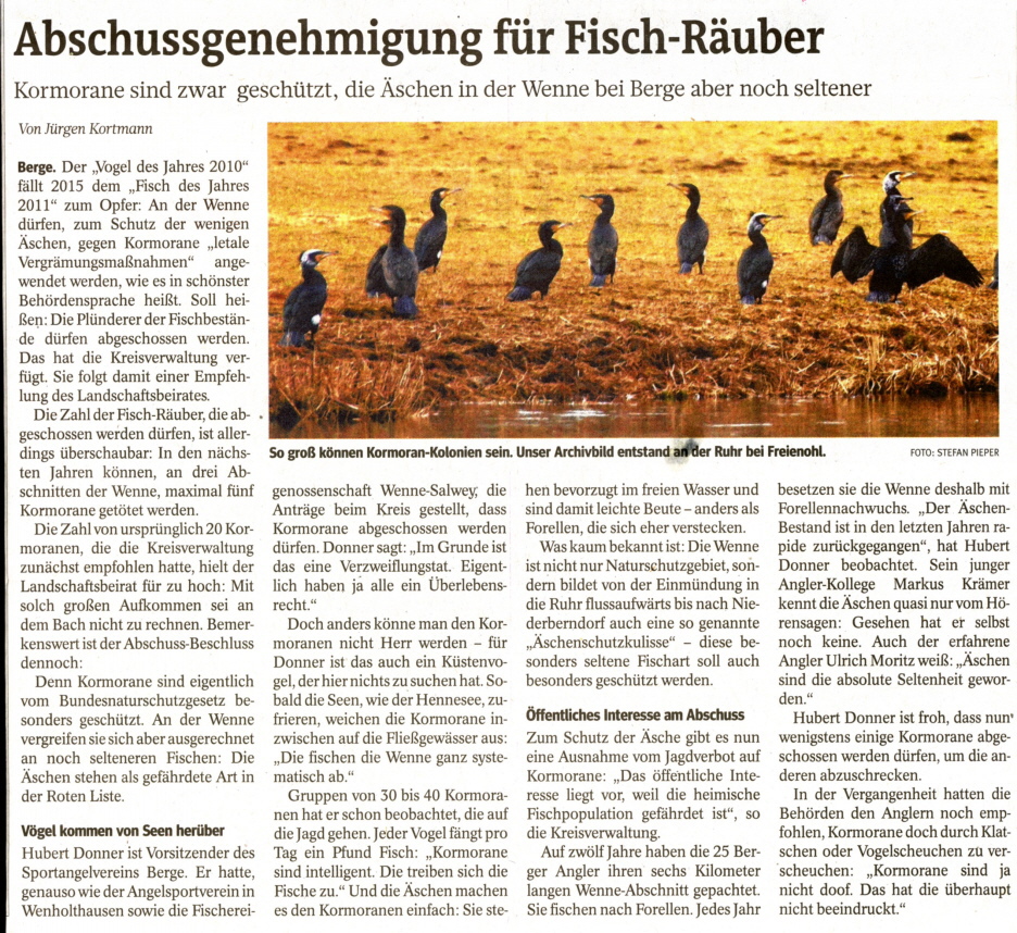 wie am vergangenen Dienstag besprochen erhalten Sie heute die erforderlichen Unterlagen für die weitere Vorbereitung der Beantragung einer Abschussgenehmigung für Kormorane.