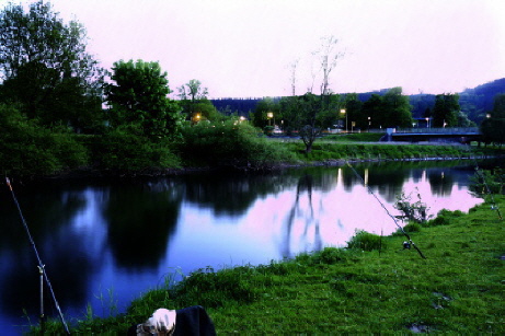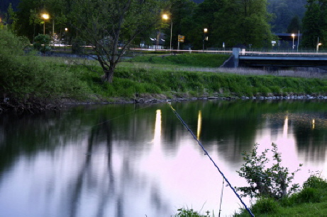 Aalangeln; die Ruhr bei Nacht