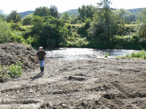Die vorbereitenden Arbeiten, an der Ruhr im Neyl, haben begonnen. Zunächst wurde der Mutterboden abgetragen. Danach begann die Gewässerverbreiterung.
